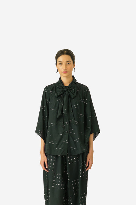 Embrace effortless style with this loose and comfortable shirt, featuring trendy slits at the sleeves and a charming ribbon at the collar. Perfect for any occasion.