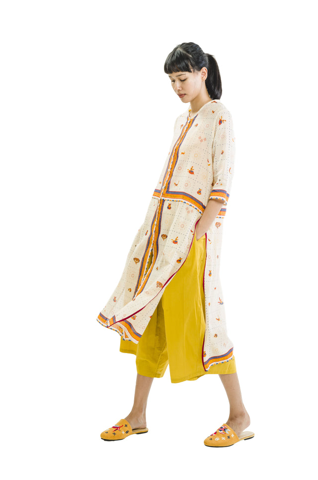Simple & refined with slits on both sides. Mid-length sleeves, O-neck.