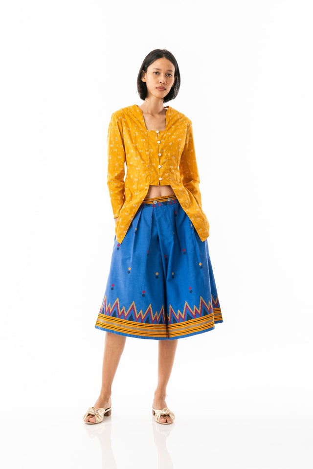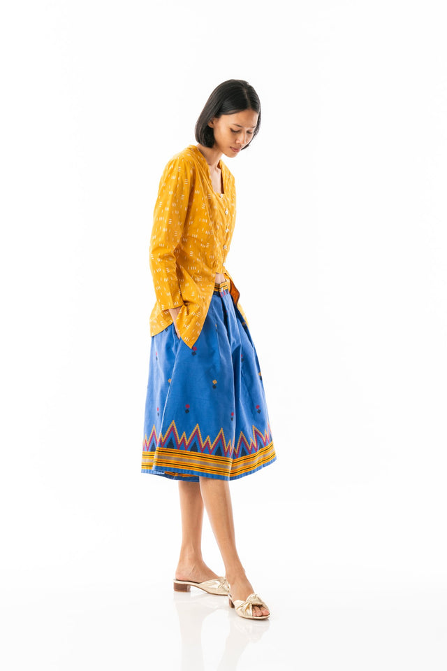 Always proud of our cultural heritage, expressed here through a clean, classic kebaya style with front buttoned kutu baru. Hand-stamped batik on cotton.
