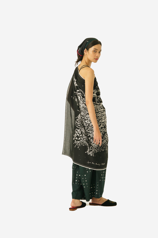 Elevate your style with a stunning piece of art in a cool and airy black scarf, crafted from the softest fabric, perfect for any occasion, day or night.